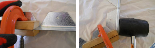 Bends of up to 60° can easily be formed along the edge of the rail at the triangular nodes by clamping the edge rail with 60mm deep wooden blocks along the line of the joint. The rail is then tapped with a rubber mallet until the required deviation is achieved. Should the bend not fall on a node, then the lower leg could be cut to suit the location of the required bend using either a steel saw or angle grinder.