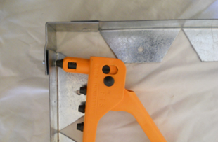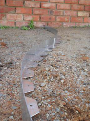 An infinite number of lengths can be joined together to serve any length of edge restraint required by simply utilising a 4.8x12mm aluminium rivet. The end joggle is to wrap around the rear of the unit following on and the rivet head is to be located on the paver side of the edge rail. Nails driven into the sub-base either side of the joint complete the jointing of the two adjacent units.